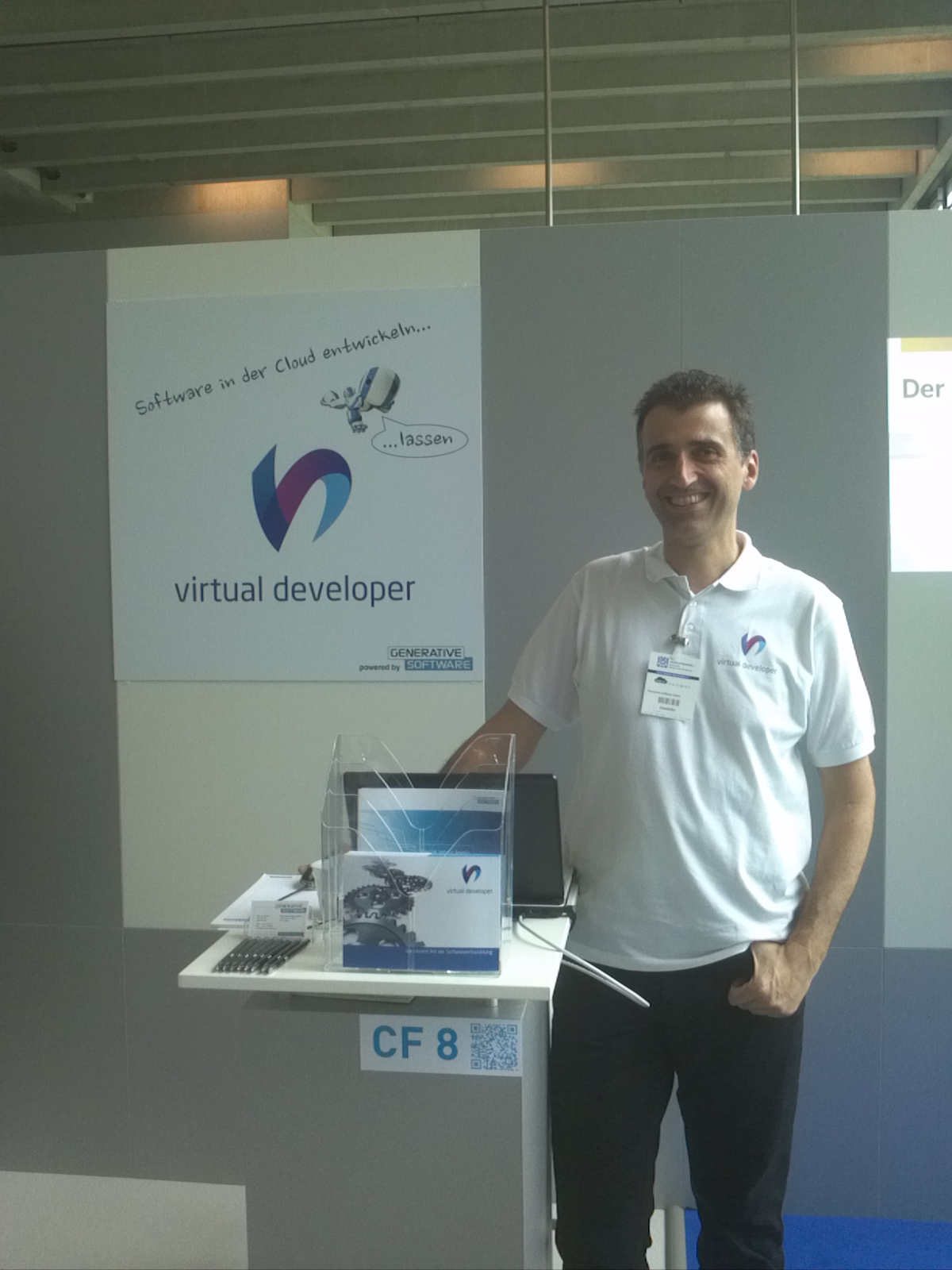 Auf der CLOUDZONE 2013 war die Generative Software GmbH mit einem Stand in der Start-Up Cloud des CyberForums vertreten. Dort hat sie ihre Virtual Developer Technologie ausgestellt. Virtual Developer bietet Softwareentwicklern ein Werkzeug zur Codegenerierung als Software as a Service (SaaS).